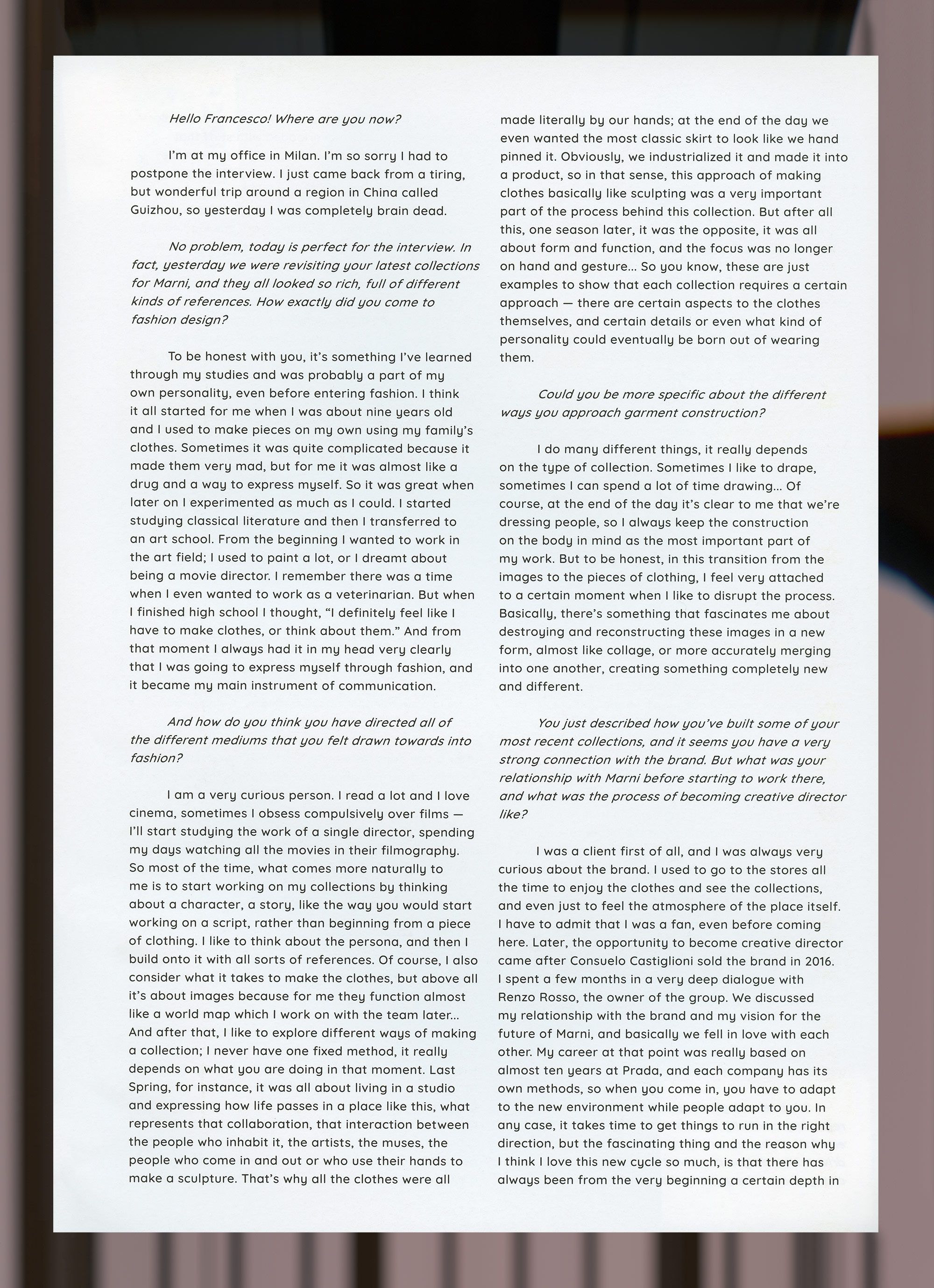 Page 367, MANY OF THEM delves into FRANCESCO RISSO’s work as creative director at MARNI and explores where he would like to take the brand in the future